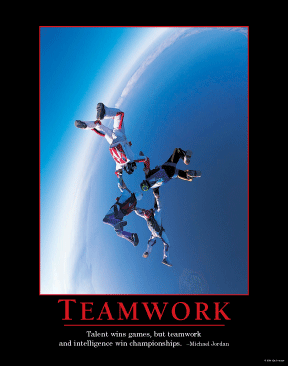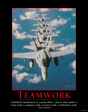 | Teamwork: Individual commitment to a group effort -- that is what makes a team work, a company work, a society work, a civilization work. Author: Vince Lombardi Teamwork: One man can be a crucial ingredient on a team, but one man cannot make a team. Author: Kareem Abdul-Jabbar Teamwork: Talent wins games, but teamwork and intelligence win championships. Author: Michael Jordan Teamwork: Teamwork is the ability to work together toward a common vision. The ability to direct individual accomplishment toward organizational objectives. It is the fuel that allows common people to attain uncommon results. |
