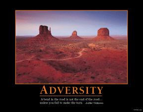 Adversity: A bend in the road is not the end of the road... unless you fail to make the turn. Adversity: Smooth seas do not make skillful sailors. ~African Proverb