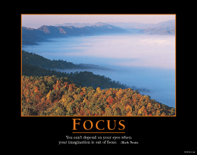 Focus: You can't depend on your eyes when your imagination is out of focus. Author: Mark Twain
